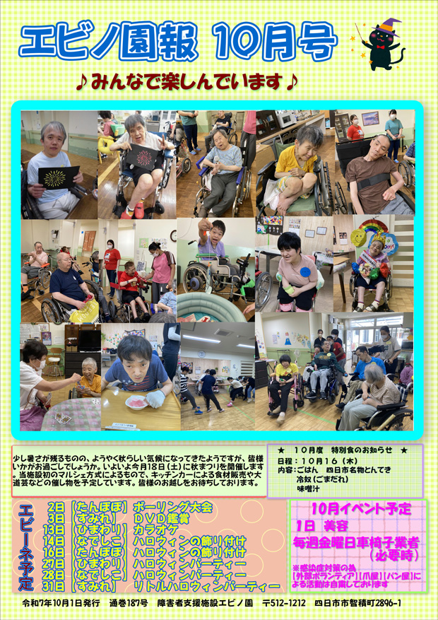 エビノ園報10月号 通巻187号を掲載しました 「♪みんなで楽しんでいます♪」