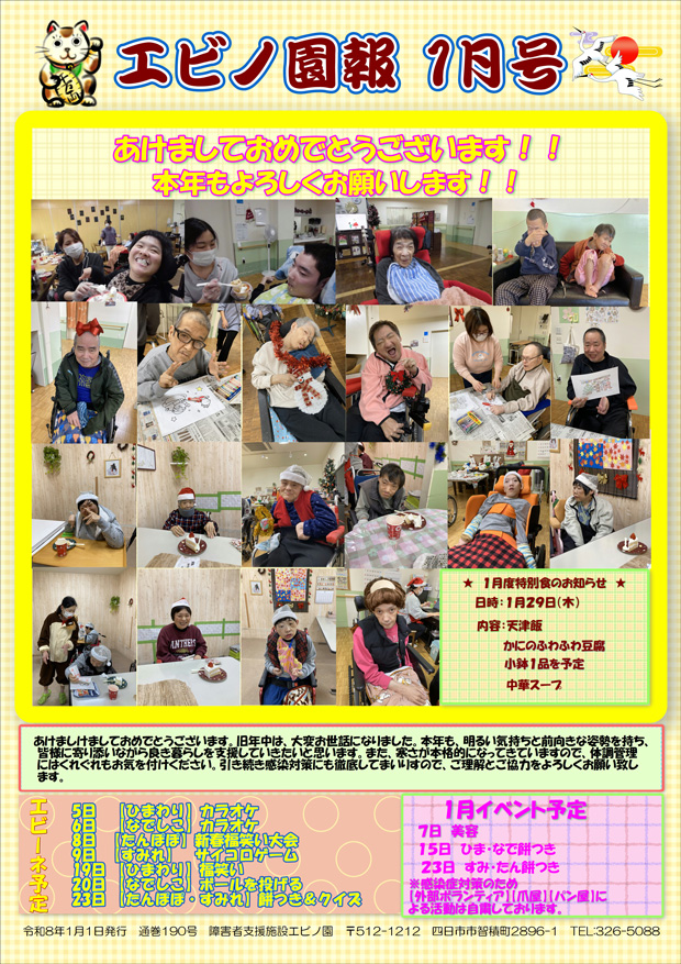エビノ園報1月号 通巻190号を掲載しました 「あけましておめでとうございます!!」
