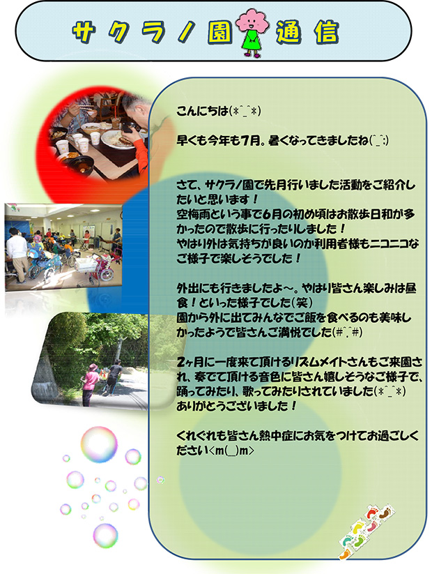 サクラノ園通信 平成28年7月号を掲載しました。